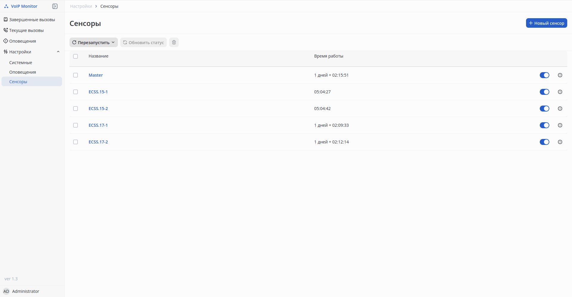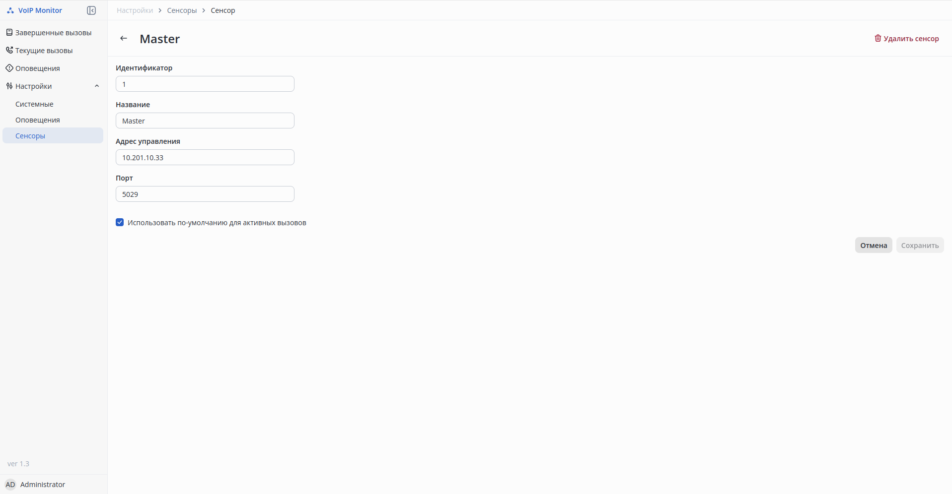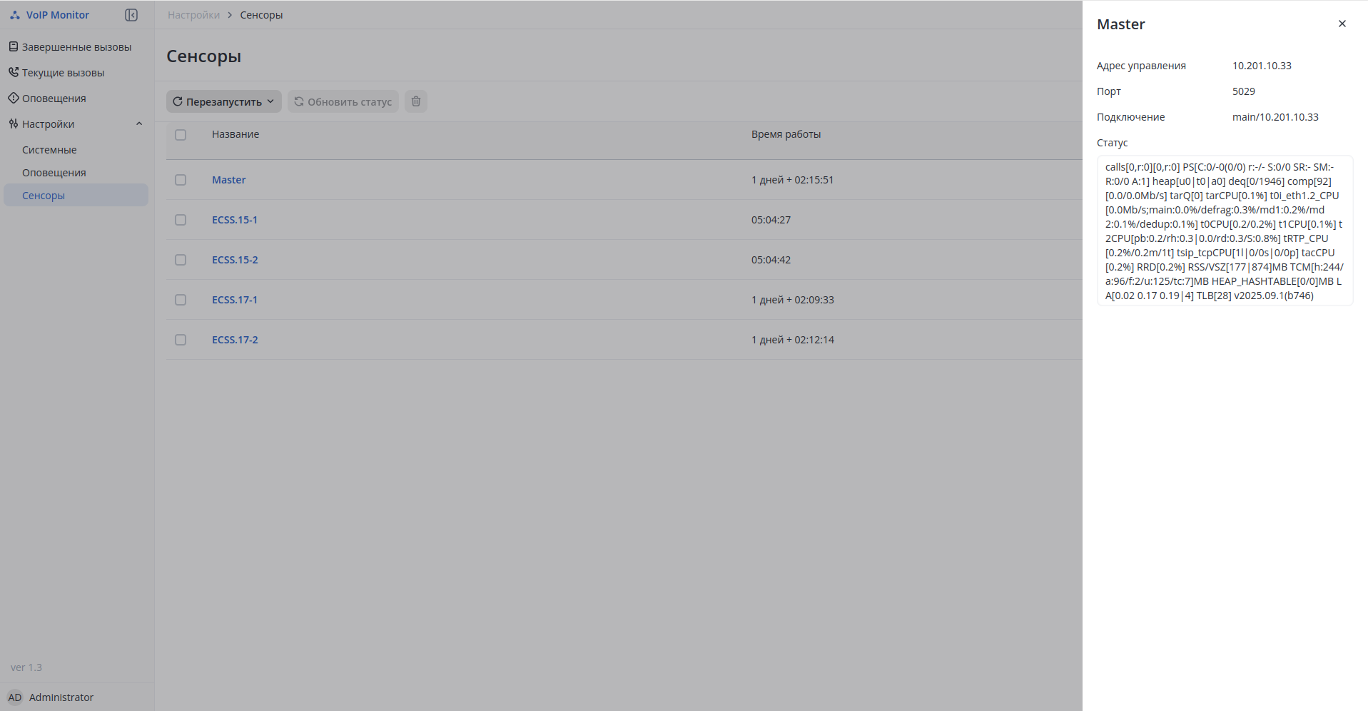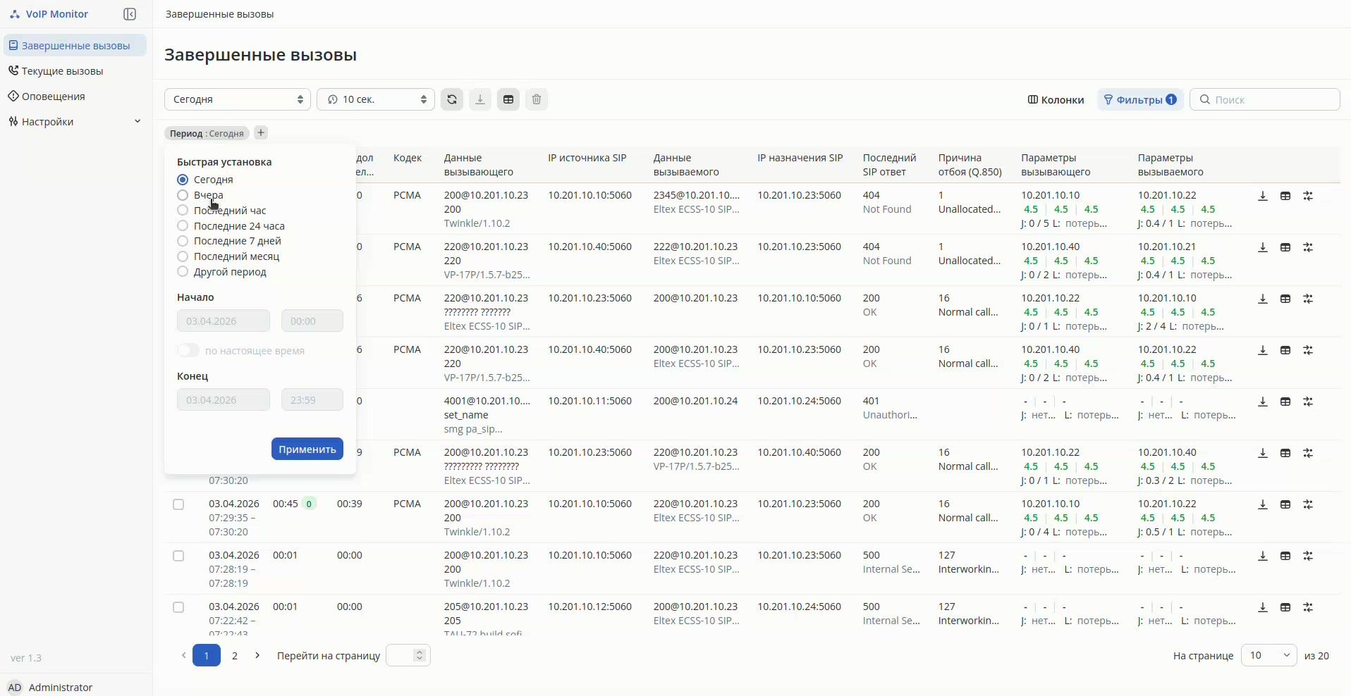Раздел Active Calls отображает все активные вызовы и их параметры качества прямо в момент разговора.