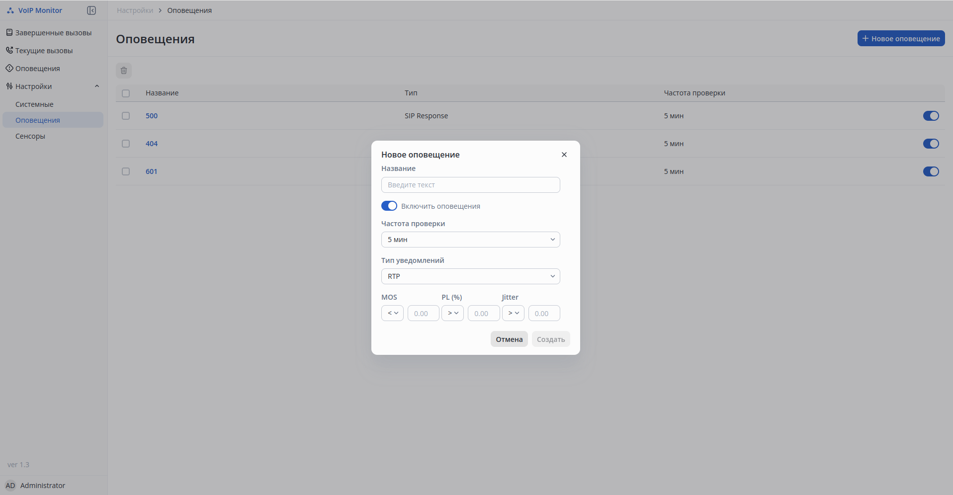Система мониторинга качества обслуживания VoIP-вызовов в телефонной сети